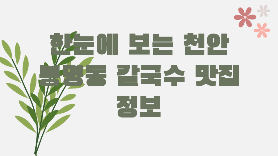 한눈에 보는 천안 봉명동 칼국수 맛집 정보