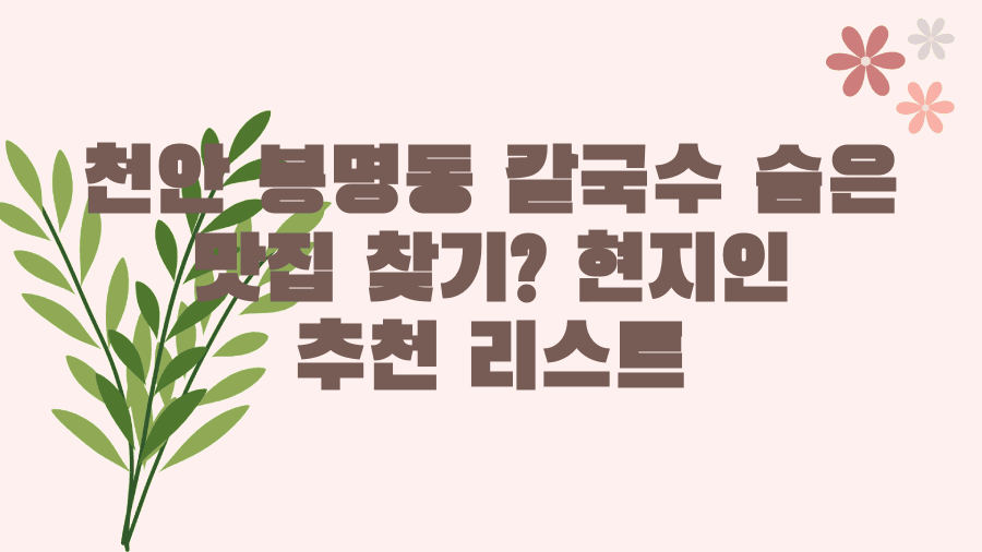 그래서 오늘은 천안 봉명동의 숨은 보석 같은 칼국수 맛집들을 샅샅이 파헤쳐, 여러분의 선택을 도와드리려 합니다.